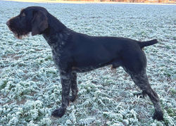 Er besticht durch sein hartes, mittellanges Haar, welches sehr stark pigmentiert ist, weshalb der Rüde auf den ersten Blick einem Schwarzschimmel ähnelt. Damast ist ein sehr sozialer und ausgeglichener Rüde, der mit Frust gut umgehen kann. Er hat einen unheimlichen "will to please" (möchte immer gefallen) und ist extrem führig, was die Arbeit mit ihm zu einem ausgesprochenen Genuss macht.